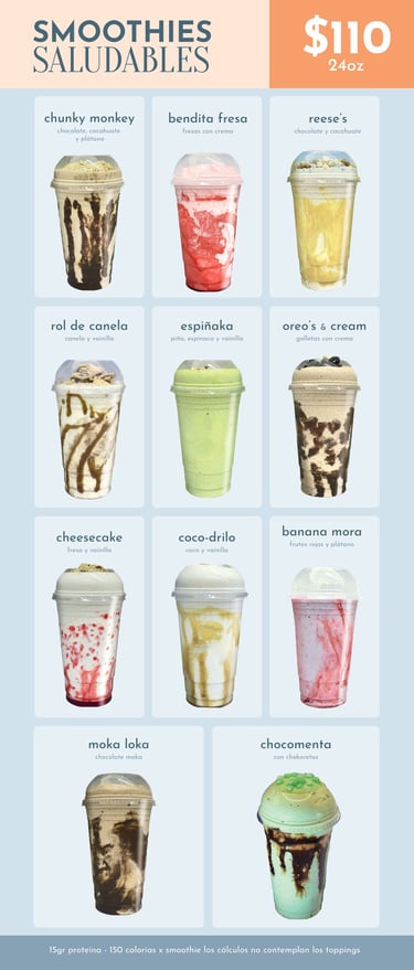 Los smoothies contienen aislado de soya, proteína, vitaminas, minerales y fibra.
